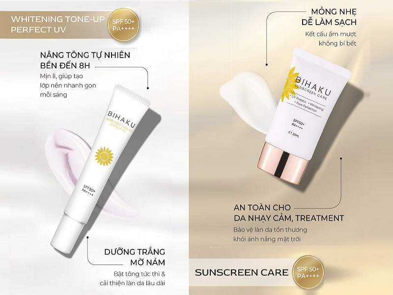 Bihaku Sunscreen Care được phát triển dành riêng cho nhóm đối tượng này. Đây là dòng kem chống nắng lý tưởng cho da yếu, da sau peel, da đang dùng retinoid hoặc các hoạt chất treatment mạnh.