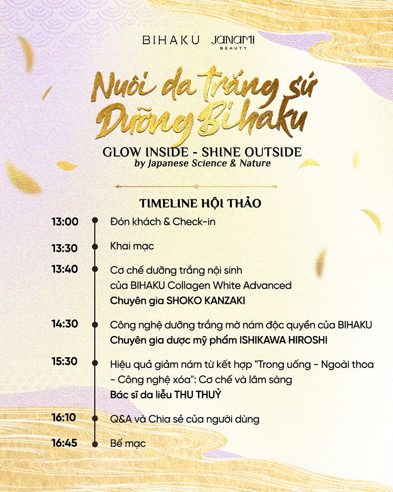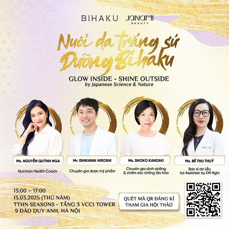 Ngày 13/3/2025, BIHAKU – thương hiệu dưỡng trắng mờ nám chuẩn Nhật với lịch sử phát triển 20 năm, trân trọng mời bạn đến sự kiện độc quyền tại Hà Nội! Đây là cơ hội để bạn khám phá giải pháp dưỡng trắng da mang tính cách mạng – kết hợp khoa học tiên tiến & tinh hoa thiên nhiên Nhật Bản, giúp da trắng sáng bền vững từ sâu bên trong.