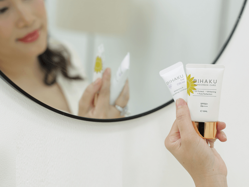 Bước 3: Sử dụng kem chống nắng Bihaku Sunscreen Care SPF50+PA++++